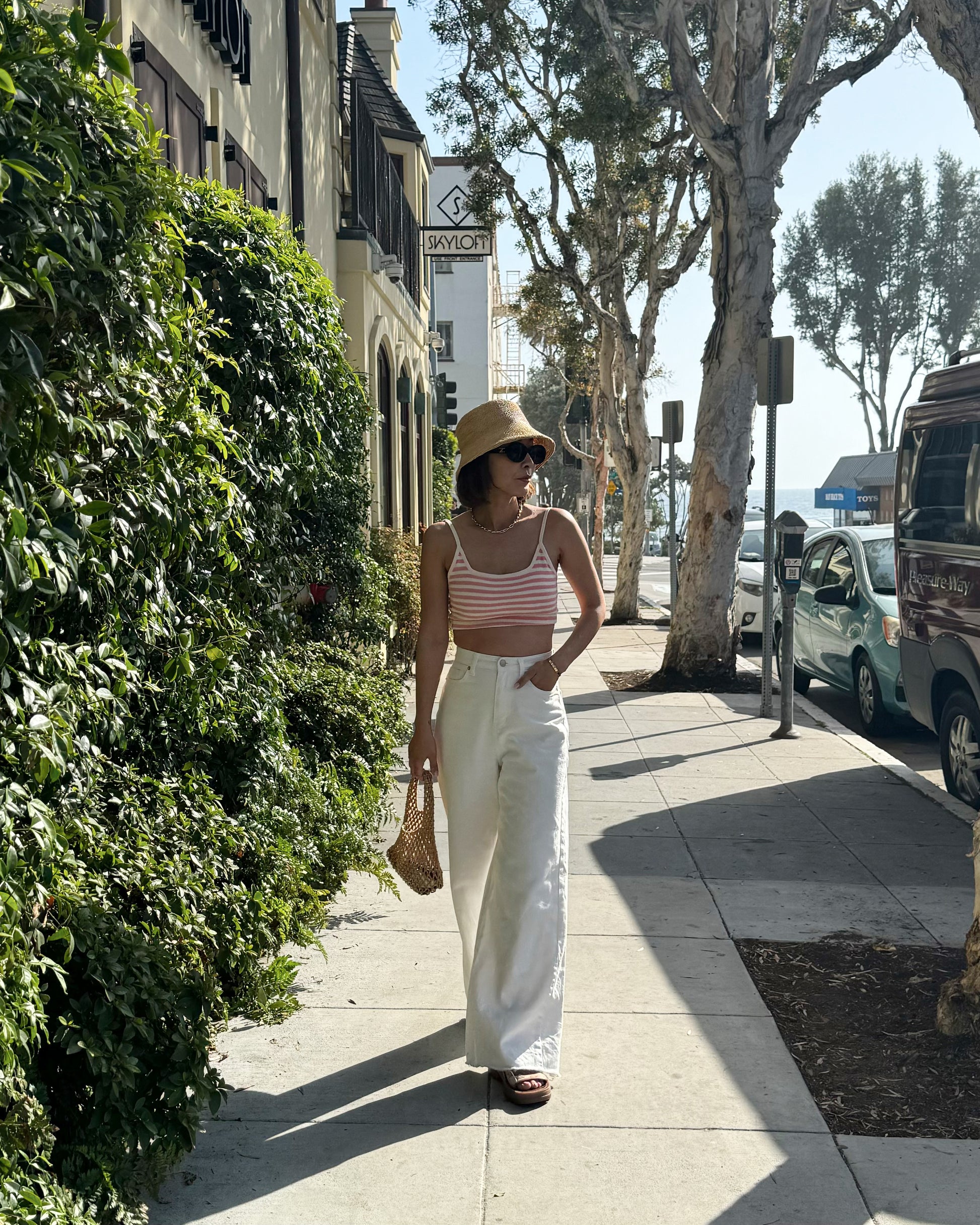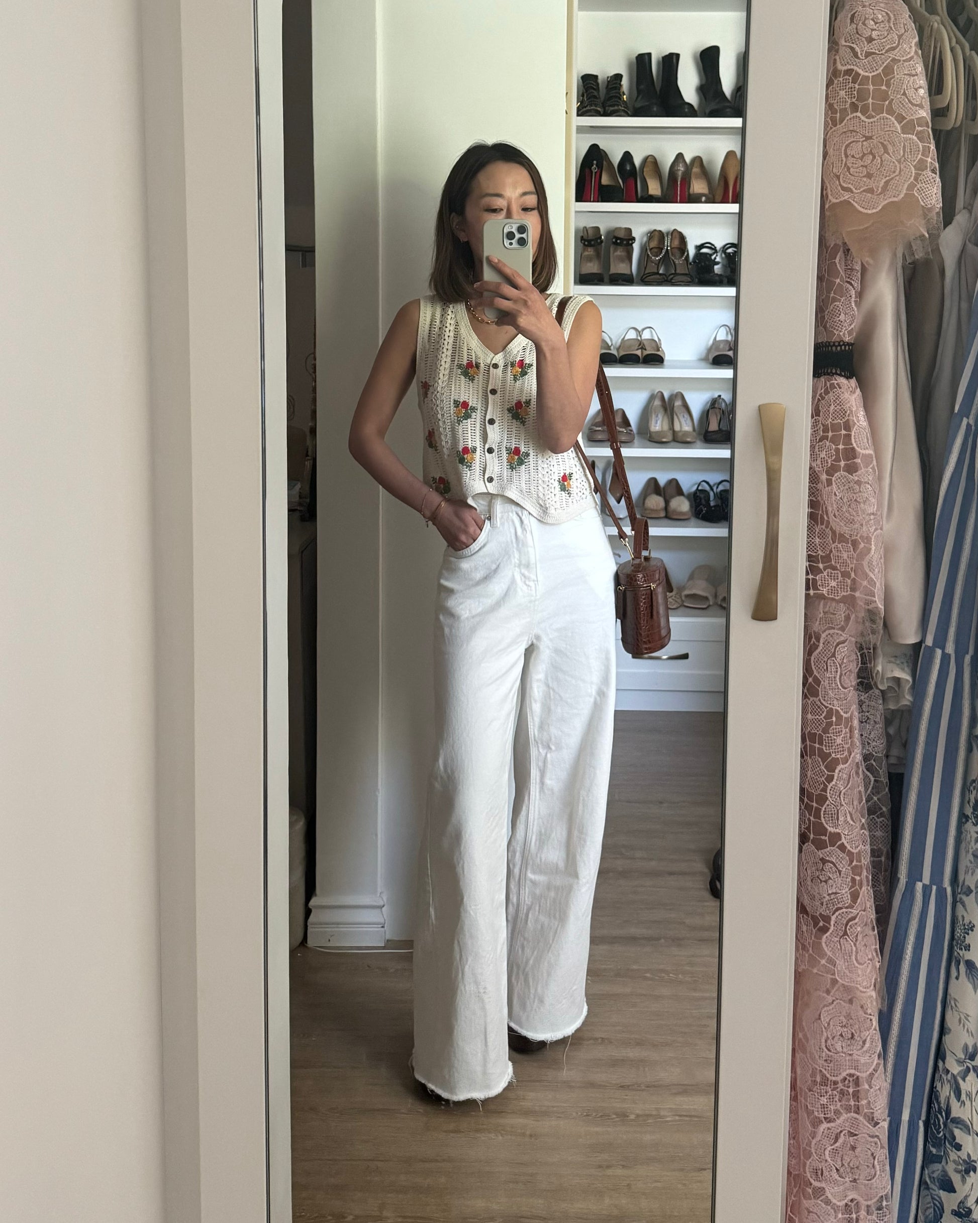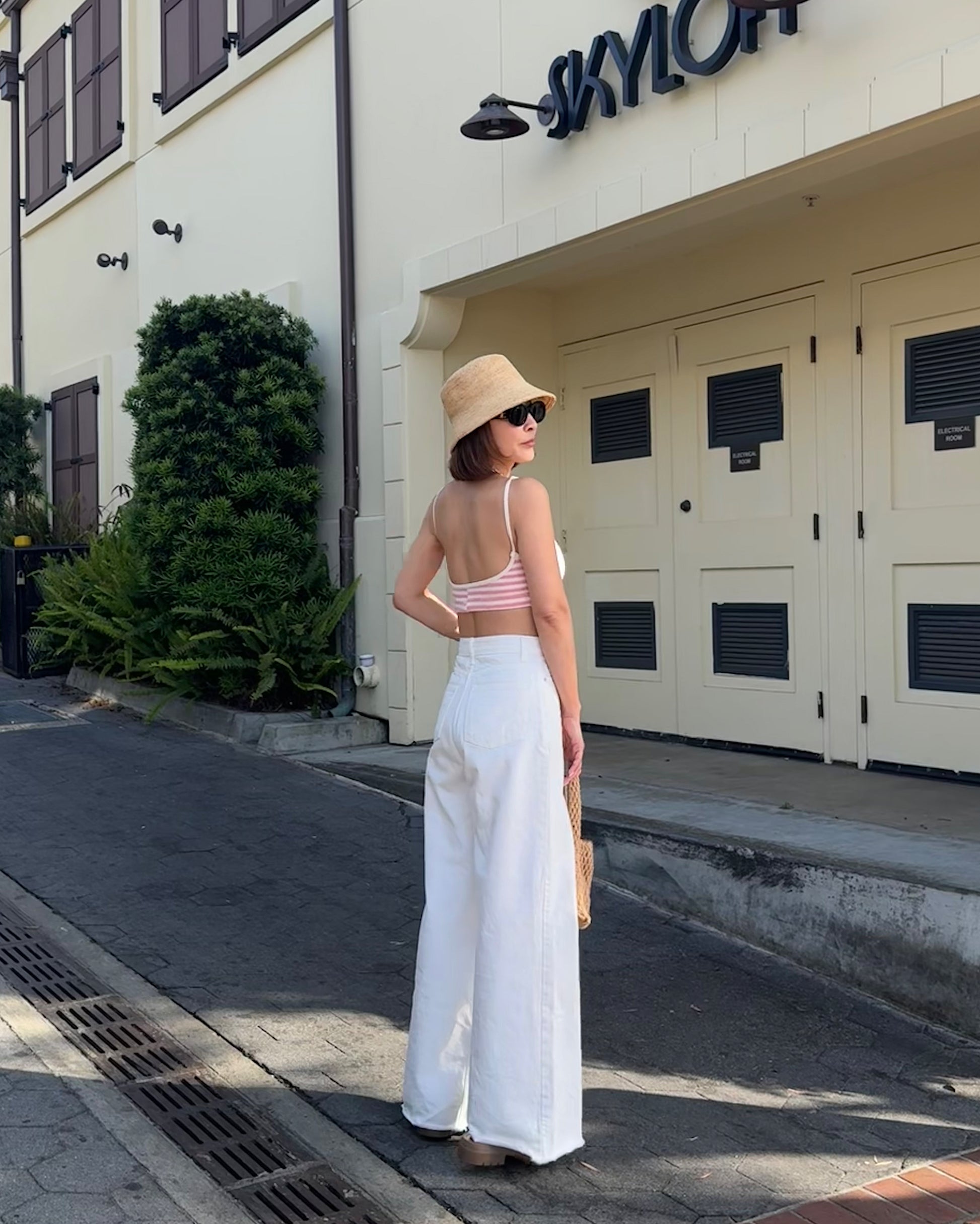 White jeans are great to have in your wardrobe for summer. These jeans are raw hemmed and looks effortlessly cool with any top. Fit is high waisted and you can dress up or down.