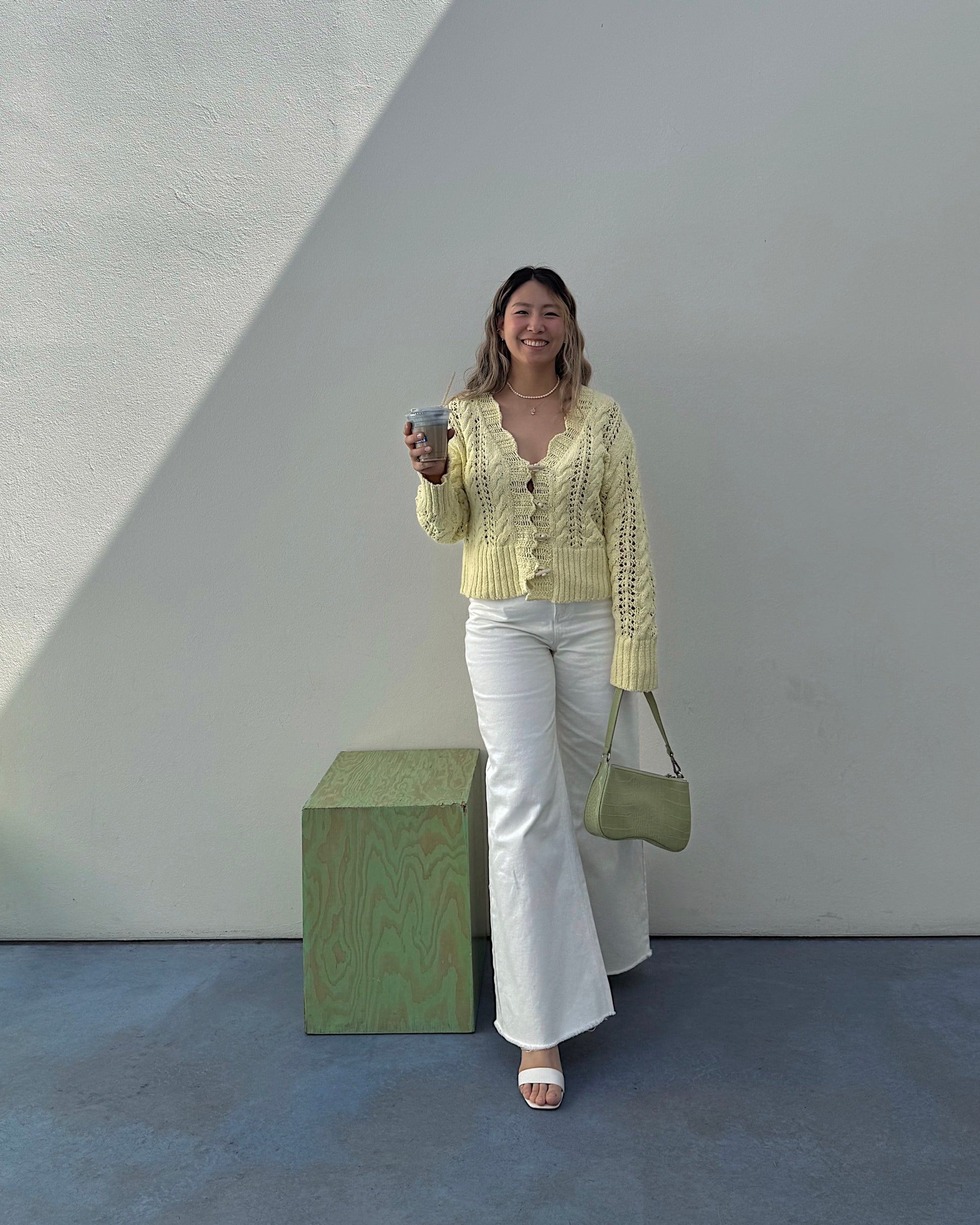 Alice is 5'3" size M and wearing frill crochet cardigan